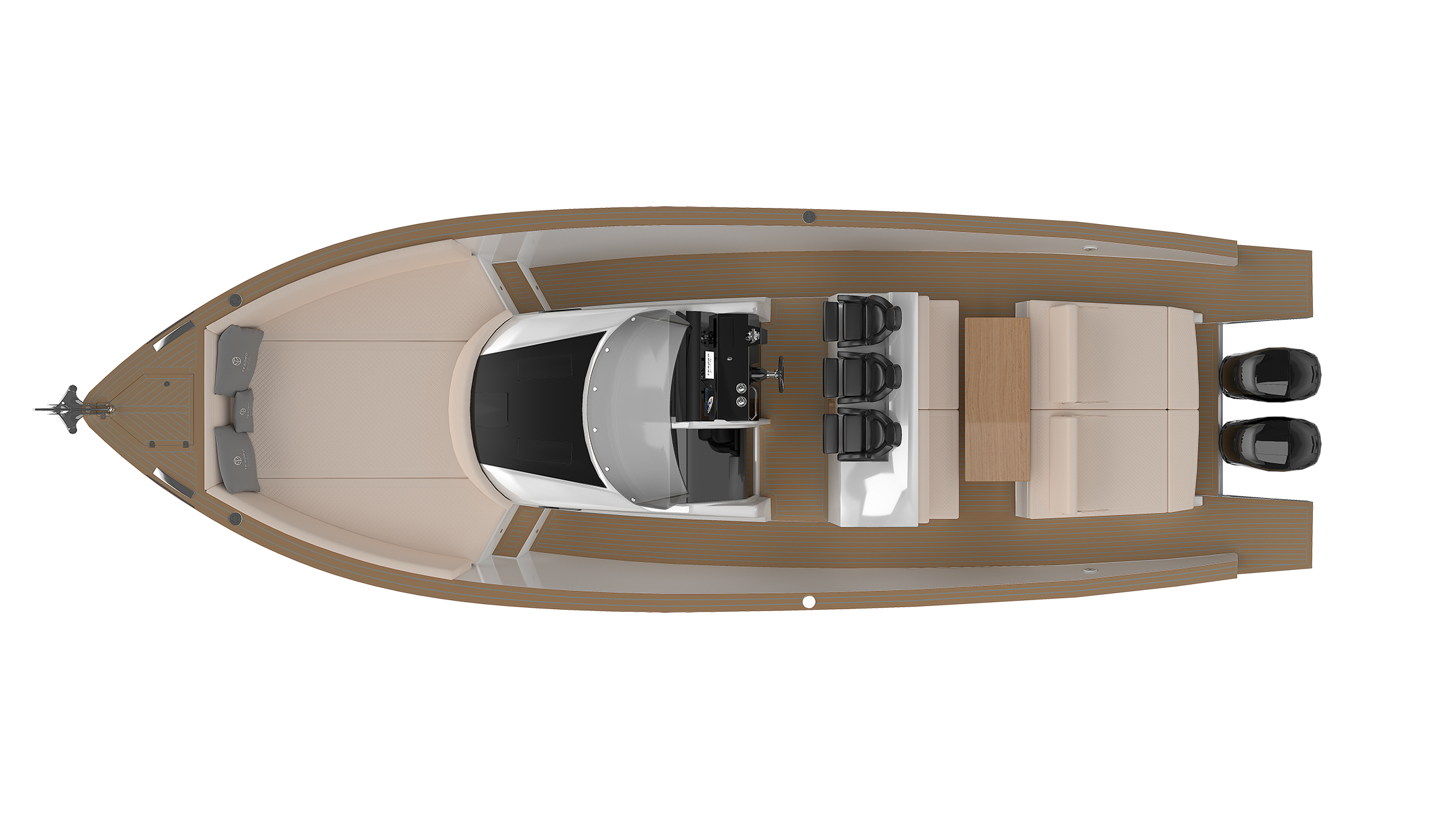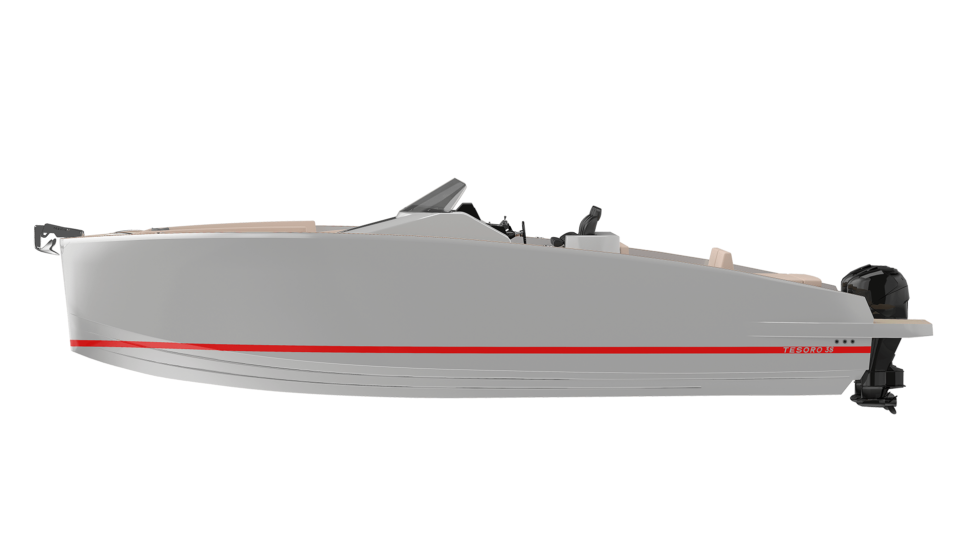 The innovative vacuum infusion process for its construction using graphene resin, makes the T38 Open Deck a really light but solid boat offering to its owner speed performances above 40 knots. Diving, fishing or wakeboarding are waiting you with the T38 Open Deck!